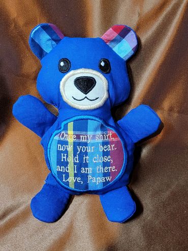 There's much to see here. So, take your time, look around, and learn all there is to know about us. All keepsakes are made according to customer request. Many are made from cherished fabric items. Feel free to reach out with an idea or request for a meaningful keepsake.